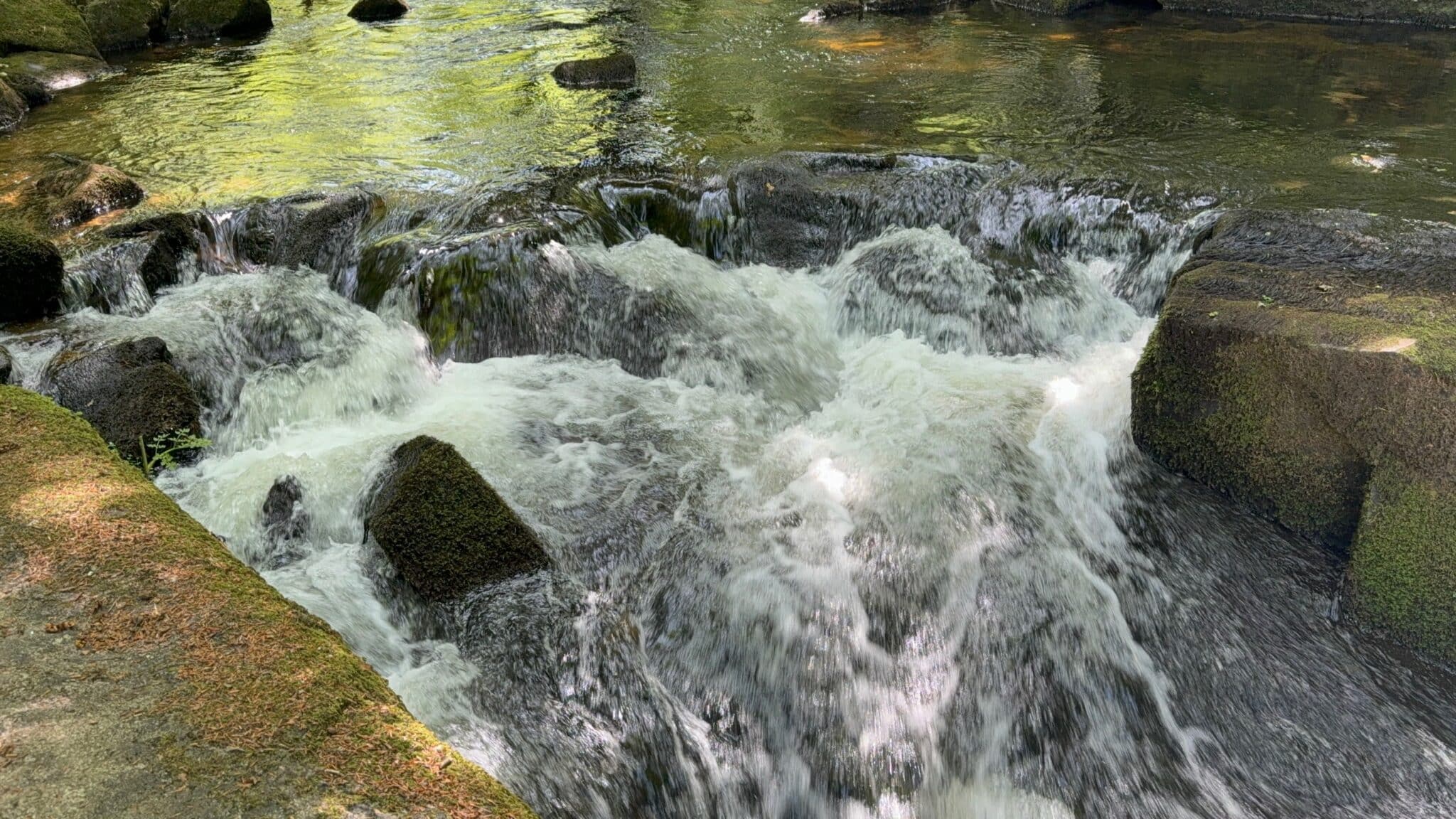 Eventually, the path curves downward and the roar of Golitha Falls grows louder. These aren’t high falls, but they’re wild — tumbling down through dark boulders, thick with moss and mist. You’ll pass an old stone pump house, a reminder that this peaceful woodland was once part of Cornwall’s industrious mining landscape.